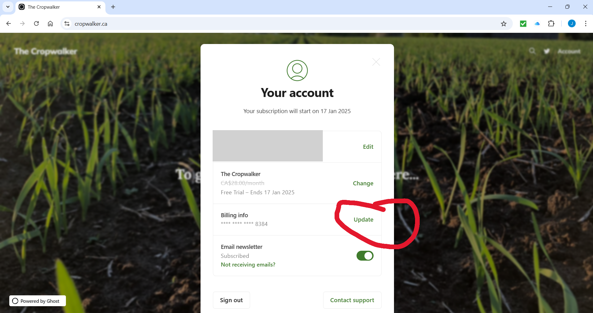 Sign into your account, and you can update your payment information.