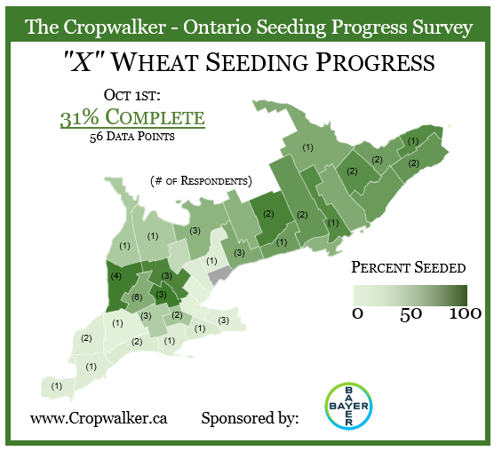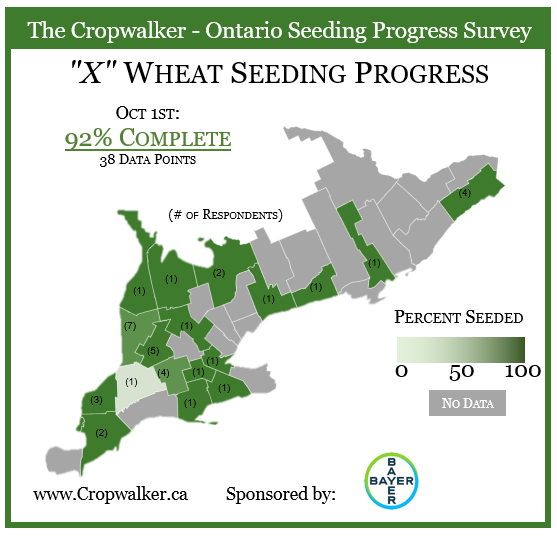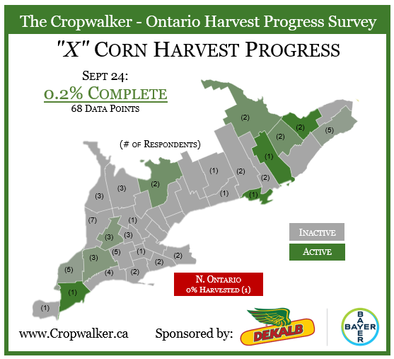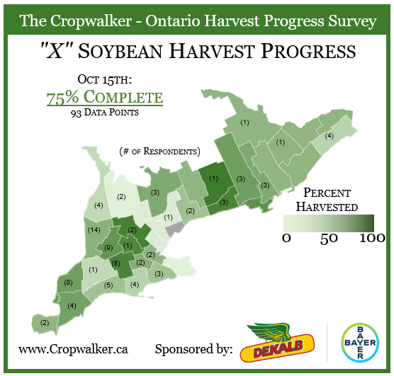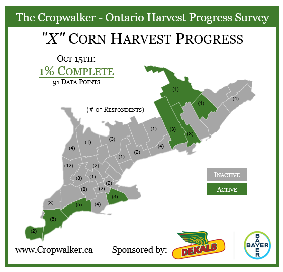 On October 13th 2023, we posted a X Roll-Call for the % of Ontario corn and soybean acres harvested up to end of the day. At this point we are looking at 92% complete on winter wheat seeding and 75% complete on soybeans. A few areas have started and are active with corn harvest, estimate we are about 1% complete.