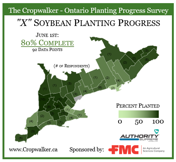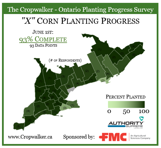 On Friday May 30th, 2025, we posted an X Roll-Call for the % of Ontario corn and soybean acres planted up to the end of Sunday June 1st, 2025.