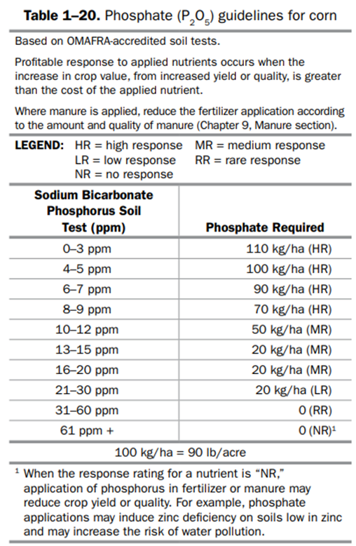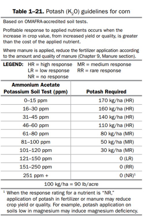 1. Crop Response – these types of recommendations will be made based on OMAFA crop response recommendations and will require a soil test.