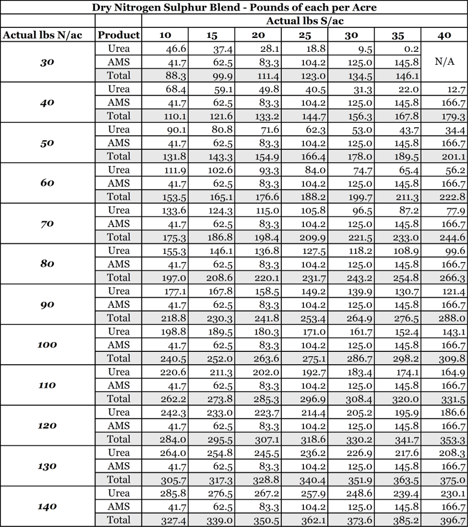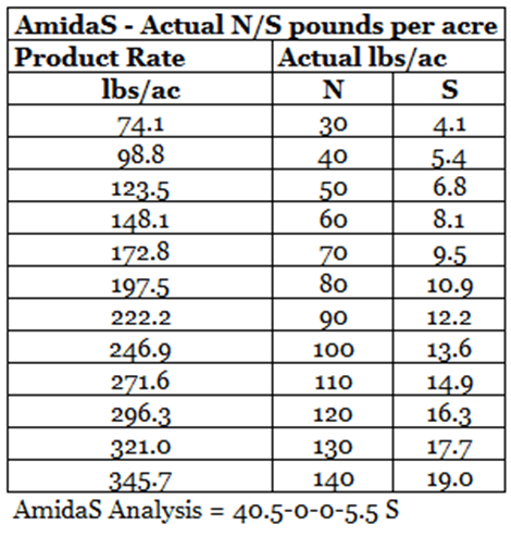 Sometimes you need a quick reference chart on what fertilizer rate to apply. I have made up the following for AmidaS, Urea/AMS and 28%/ATS.